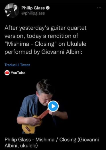 ► Matteo Generani, Cartolina Musicale (2020) for ukulele solo (gCEA). Duration: 3′. Written for, dedicated to, revision and fingering, and premiered by Giovanni Albini. VIDEO