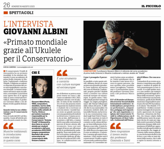 At the Conservatorio “A. Vivaldi” of Alessandria, Professor Albini has established a Bachelor’s degree program focused on the ukulele. This pioneering initiative marks the world’s first-ever course dedicated to the instrument, offering a comprehensive curriculum specialized in ukulele performance. Prof. Albini is at the forefront of commissioning and performing contemporary classical music pieces tailored for the ukulele. His expertise extends to arranging classical compositions, as well as acclaimed contemporary and 20th-century scores, effectively cultivating an innovative and sophisticated repertoire for the ukulele. His efforts are directed towards enriching the instrument’s unique idiomatic characteristics, driving its evolution. His ukulele transcriptions are edited by Ricordi and exclusively distributed by Hal Leonard. In March 2023, he presented his research on contemporary ukulele music during seminars for composition classes at prestigious institutions like The Juilliard School of Music in New York and the Curtis Institute of Music in Philadelphia. As the co-director and co-founder of the Ukulele International Conference (UIC) – an interdisciplinary platform encompassing Performance, Composition, and Organology – Prof. Albini contributes significantly to the global ukulele community of researchers. The inaugural edition (UIC 2021) took place at the University of Milan in December 2021, receiving resounding acclaim. Its proceedings, “Research Paths in the Ukulele” have been published by Milano University Press. Building on this success, the second edition (UIC 2023) has been organized and hosted by the Conservatory of Music “Antonio Vivaldi” in Alessandria, Italy. Prof. Albini is a respected faculty member in the esteemed summer courses organized by the Fondazione Campus Internazionale di Musica, held in the picturesque castle of Sermoneta.